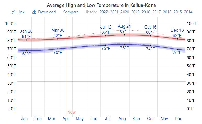 For the Big Island specifically, the weather is usually nice all year round, with the Leeward side being a little warmer and drier and the Windward side being cooler and rainier. In the Kohala region (where many of the resorts are located), since the weather is almost always sunny with clear skies, perhaps, the best time to travel isn’t impacted by the weather but instead on whether or not there are any good deals at the resorts?! Just wanted to mention it…LOL. That being said, the best time to visit the Big Island is often from mid-September through early November (after school starts but before the holidays begin). The second best time is usually from April through early May. I think it avoids to local spring break crowd but ends before graduation season begins.