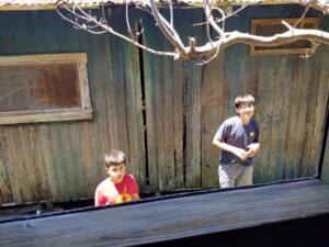 Me taking a picture of my son (on the right) from inside the bathroom. LOL.